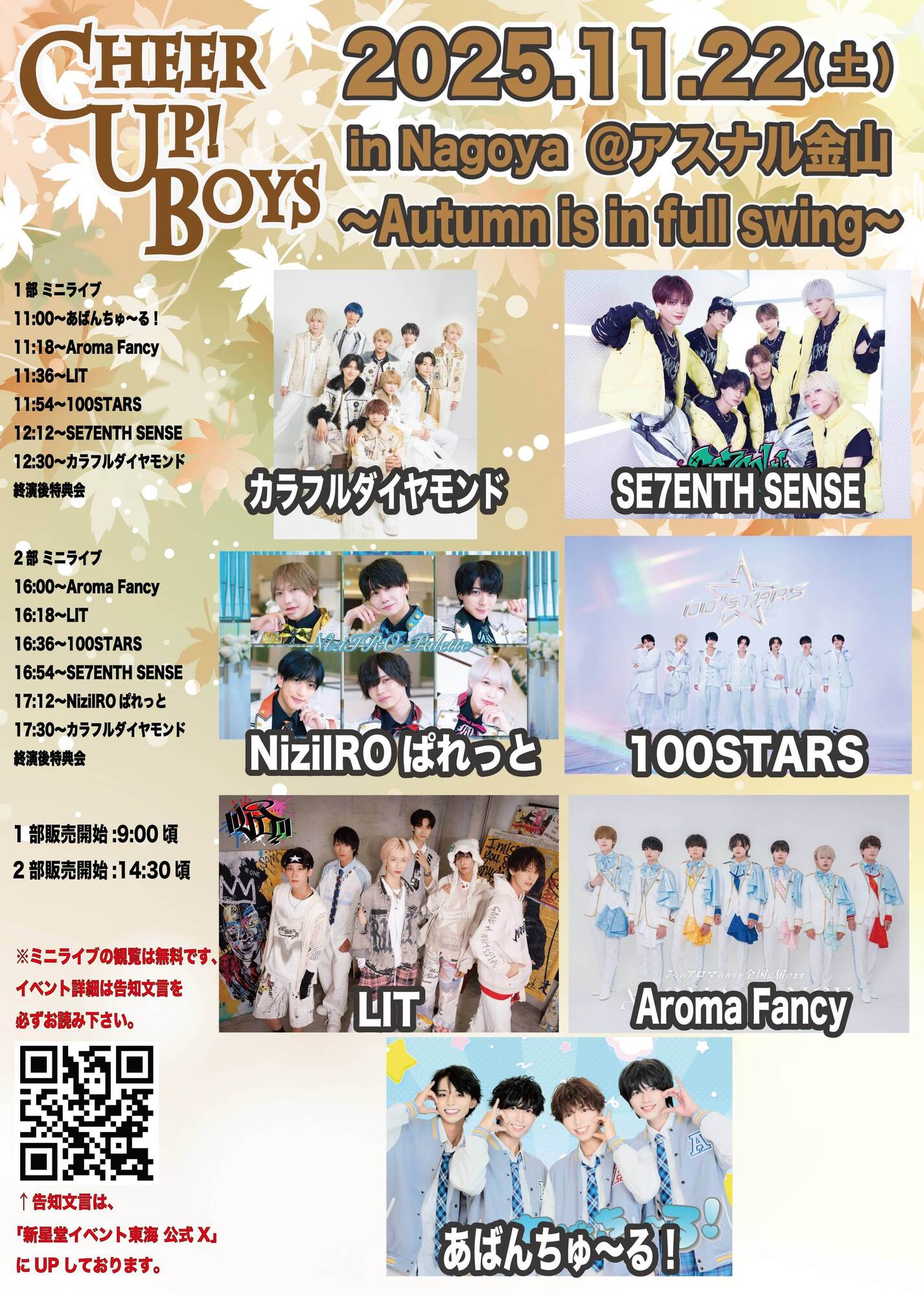 11/22(土)【新星堂presents Cheer Up! Boys in Nagoya@アスナル金山 〜Autumn is in full swing〜】出演のお知らせ
