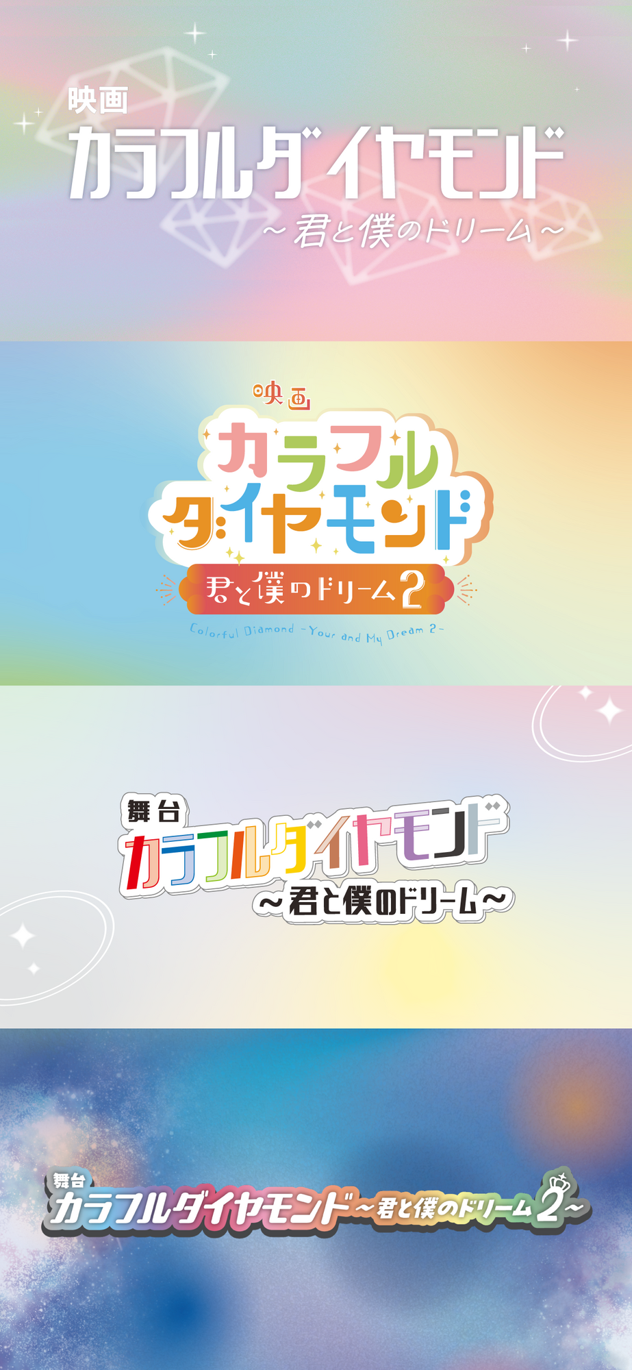 カラフルダイヤモンドの情熱や想い、葛藤など、貴重な素顔を映した初の映画作品で、TBSドキュメンタリー映画祭2024で上映され観客賞を受賞したドキュメンタリー映画『カラフルダイヤモンド~君と僕のドリーム~』。さらに成長を遂げた彼らに密着したドキュメンタリー映画『カラフルダイヤモンド~君と僕のドリーム2~』がTBSドキュメンタリー映画祭2025で上映され、2年連続で観客賞を受賞。そして、ドキュメンタリー映画を原作に据えながら、本人が本人役を演じ、夢に向かうリアルな姿を描いた舞台『カラフルダイヤモンド~君と僕のドリーム~』、異世界ファンタジーの要素を取り入れた斬新な構成で、アイドルとしての“光と影”を描いた舞台『カラフルダイヤモンド~君と僕のドリーム2~』。