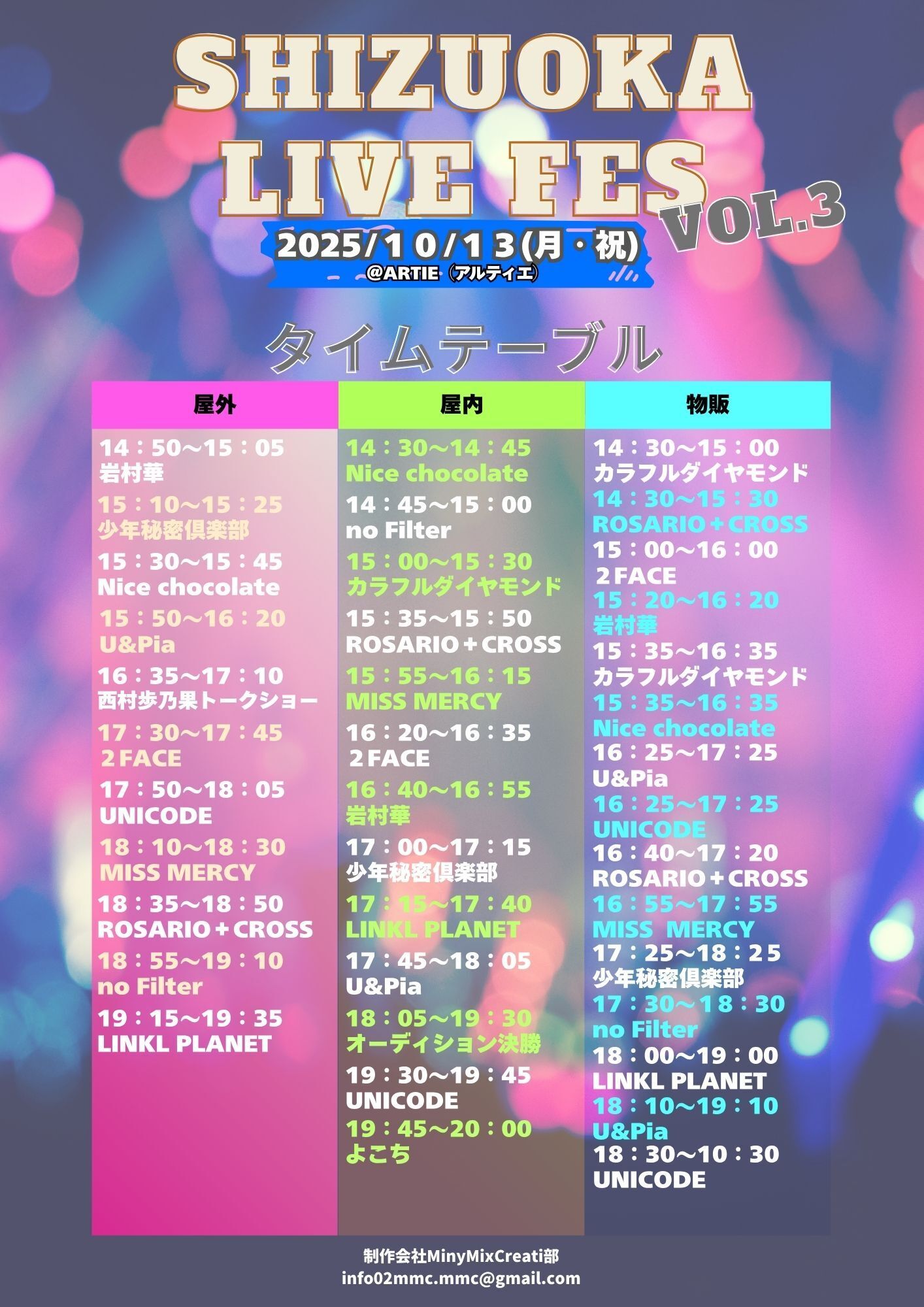 ※更新※10/13(月・祝)「SHIZUOKA LIVE FES VOL.3」DAY2 出演のお知らせ