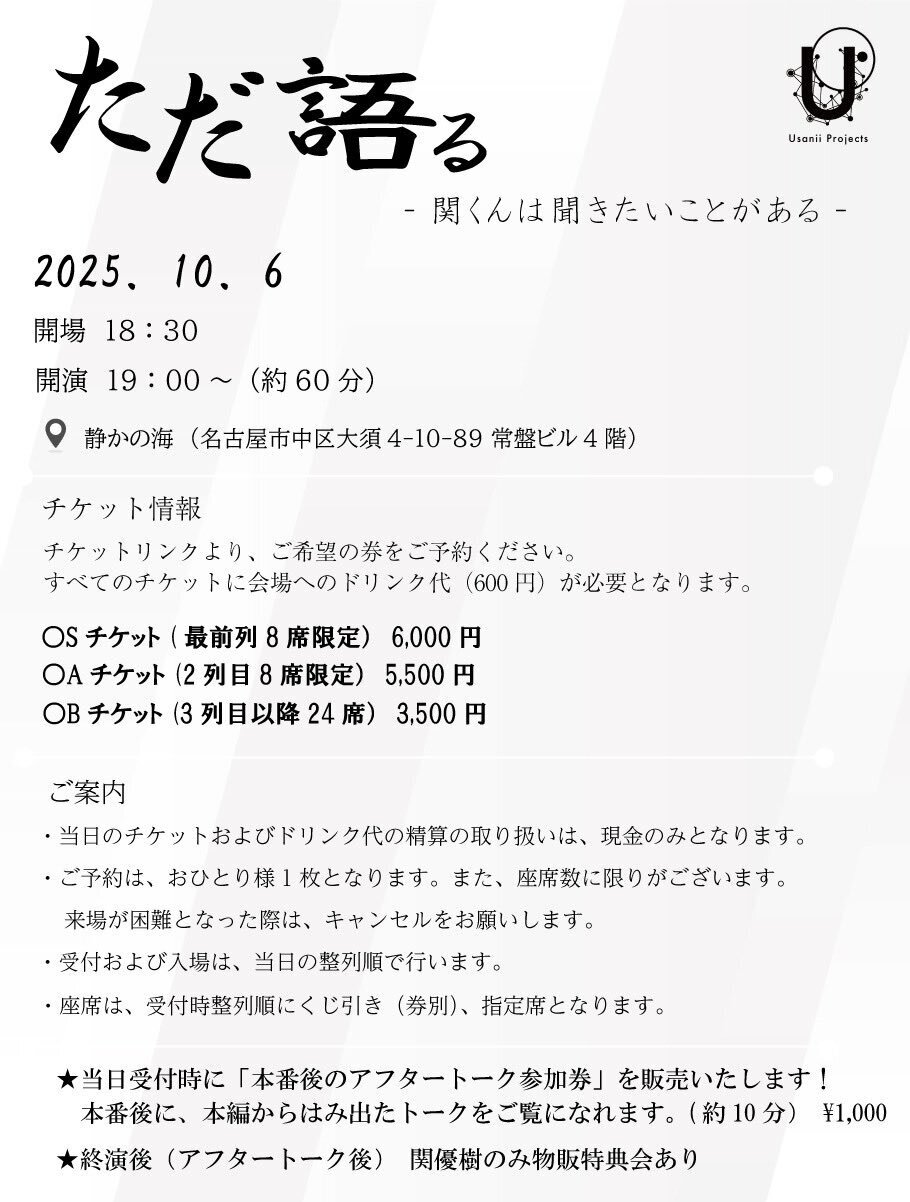 10/6(月)『ただ語る-関くんは聞きたいことがある-』出演のお知らせ