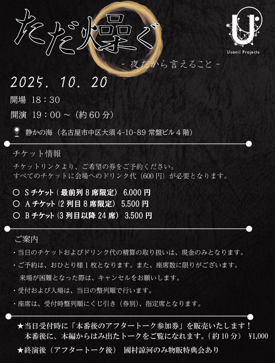 ★当日受付時に「本番後のアフタートーク参加券」を販売いたします。